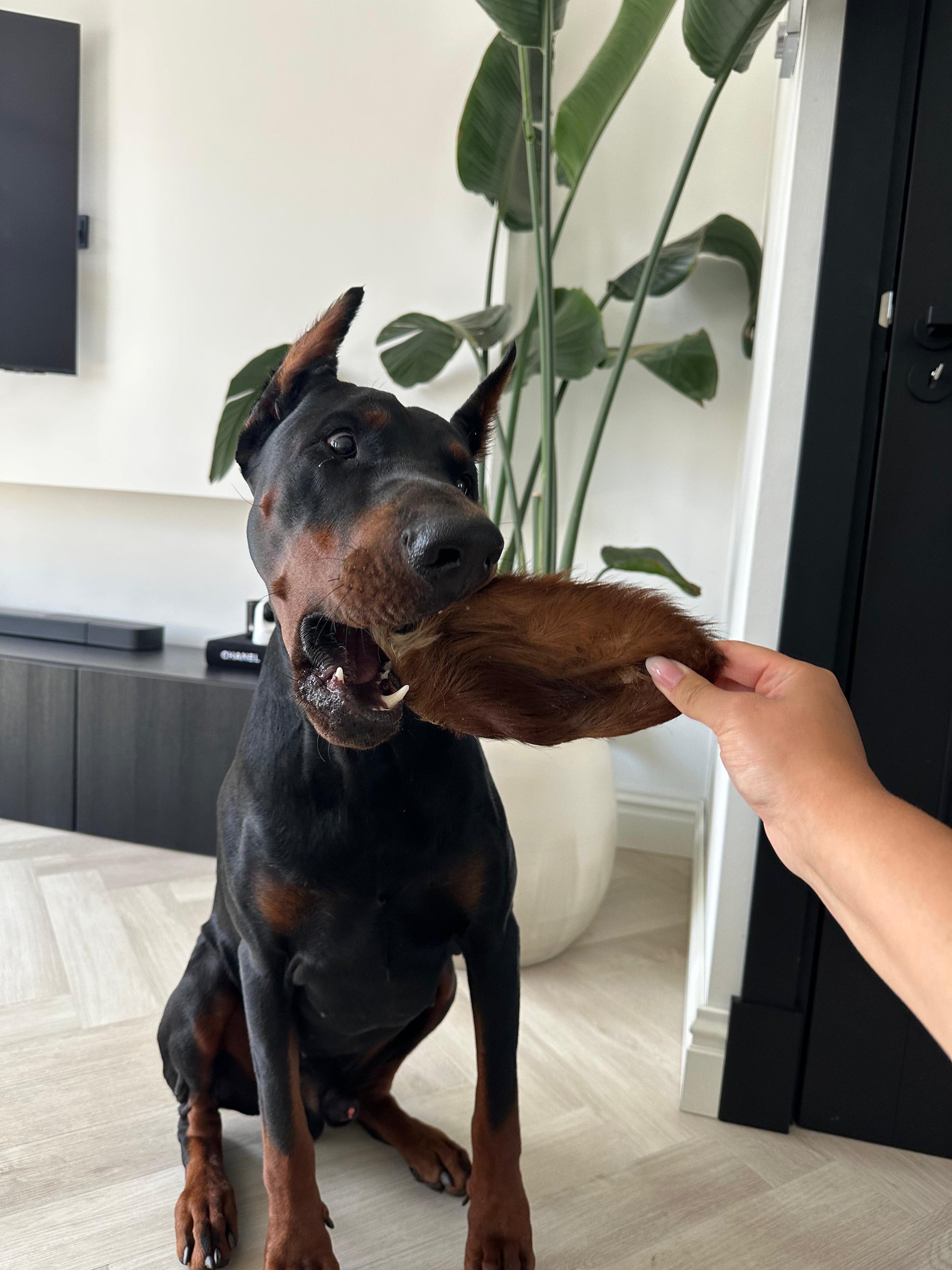 Onze runderoor met haar is een smakelijke en natuurlijke traktatie voor je hond. Het haar op het oor voegt een extra vezelrijke component toe, wat zorgt voor een langdurig kauwplezier. Het is perfect voor honden die van kauwen houden en die hun tanden op een natuurlijke manier willen verzorgen.